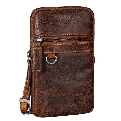 STILORD "Zion" midjeväska vintage av äkta läder | midjeväska för män och kvinnor | perfekt för smartphones från 7 tum | resor och sport, Napoli – brun, L