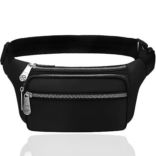 HNOOM Midjeväska för kvinnor och män med regnskydd och 5 blixtlåsfickor, justerbart bälte, sport midjeväska för cykling, löpning, jogging, resor, Svart noir noir, MEDIUM, fritid