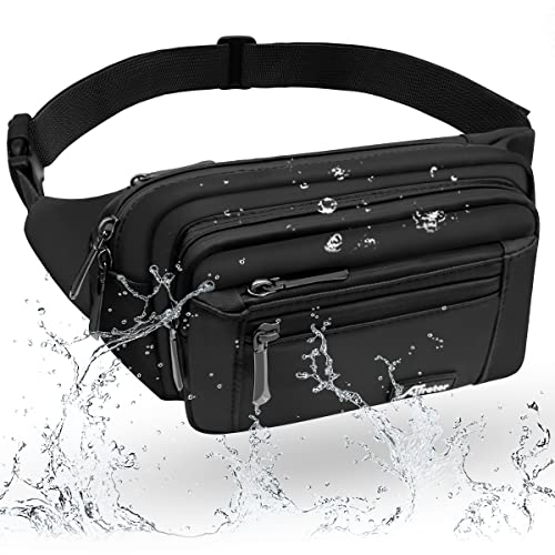 Bumbag midjeväska, vattentät 4 blixtlåsfickor midjeväska löpning midjeväska justerbart bälte midjeväskor för män kvinnor utomhus, sport, vandring, resor (svart), Svart, En storlek, Trendig och