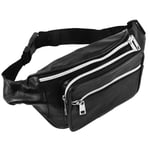 Midjeväska i läder för män & kvinnor, utomhus, resor, sport, vandring, camping, löpning, smal väska med bälte för höft, rumpa, handväska, plånbok, mobiltelefon, axelväska, svart