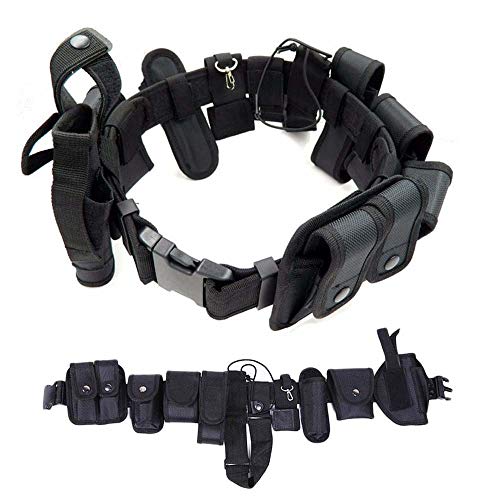 HSITOO Nylon Svart 55 tum Multifunktionell Utomhus Träning Bälte Väska Vandringsbälte Patrolmilitär Midjeväska Utrustning (10 st Bälteset)