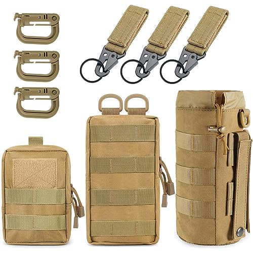 MUCHER 3-pack molle väska taktiska höftväskor EDC Utility midjeväska höftväska med 3 krokar och nyckelring för utomhus vandring jakt camping träning, kaki, 72-120cm, för camping vandring resor