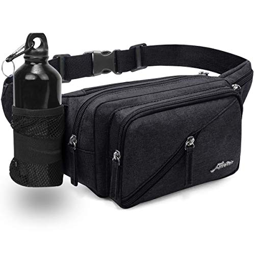 Afreter Magväska vattentät midjeväska pack män kvinnor höftväska med vattenflaska hållare justerbar rem lämplig för utomhus träning resor vandring cykling hund promenad påse väska väska, Black, 15.75in L x 5.9in H x 3.54in D