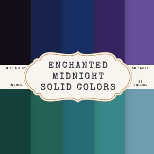 Enchanted Midnight Solid Colors Scrapbook Paper – 50 Pages, 25 Double-Sided Colors – 8.5 x 8.5 in Pad: Dark Solid Colors in Dark Blue, Plum, Forest, Gray, Teal for Journals, Tags, Collage, DIY Crafts