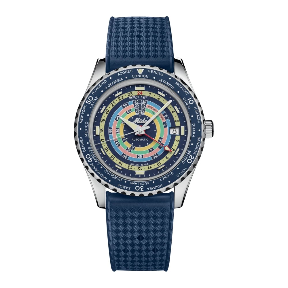 Mido, Accessoarer , Herr, ONE Size, Ocean Star Decompression Worldtimer - Automatisk Blå Urskiva