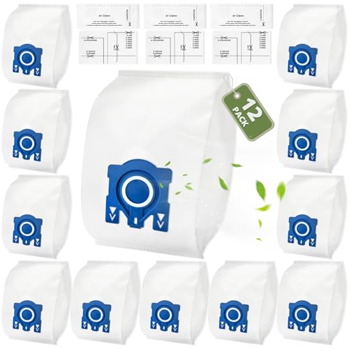 12 Pack dammsugarpåsar för Miele GN dammsugare, 12 påsar och 2 Hepa-filter, kompatibla med Miele GN 3D Airclean Efficiency dammsugarpåsar för Classic C1, Complete C2, C3, S227, S2, S5 och S8 serier