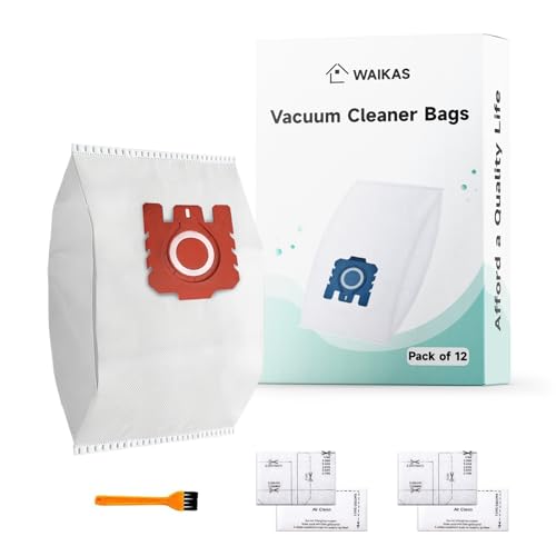 WAIKAS 12-Pack Dammsugarpåsar, Kompatibel med Miele FJM/GN, Classic C1, Complete C1 Complete C2 Complete C3, Röd
