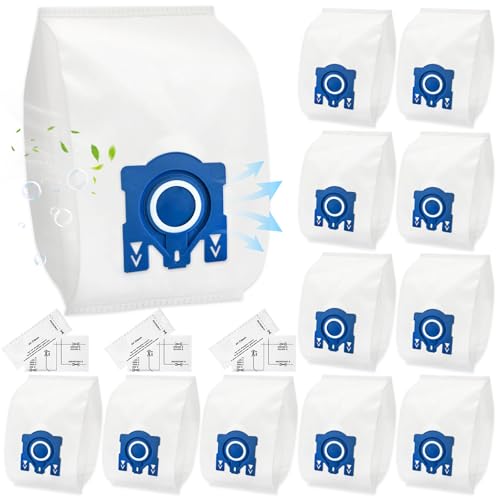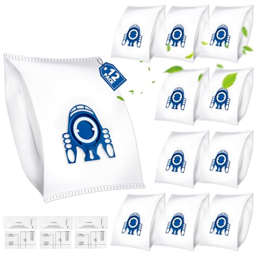 12 Pack dammsugarpåsar för Miele GN dammsugare, 12 påsar och 2 Hepa-filter, kompatibla med Miele GN 3D Airclean Efficiency dammsugarpåsar för Classic C1, Complete C2, C3, S227, S2, S5 och S8 serier