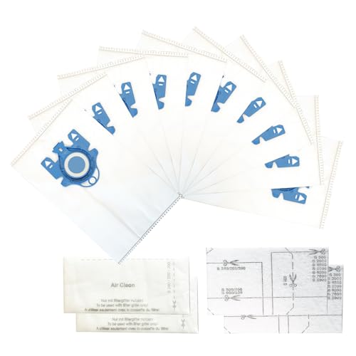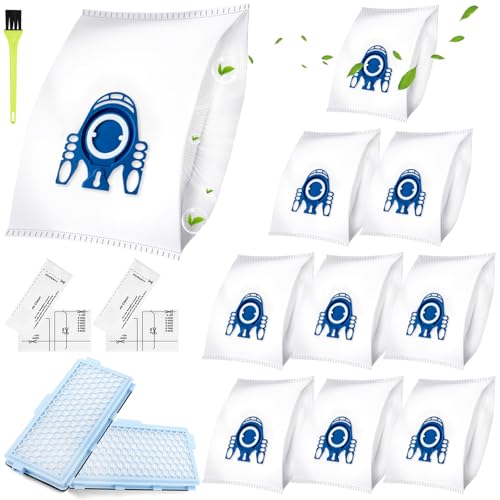 10 Pack dammsugarpåsar för Miele GN dammsugare, 10 påsar och 2 Hepa-filter, kompatibla med Miele GN 3D Airclean Efficiency dammsugarpåsar för Classic C1, Complete C2, C3, S227, S2, S5 och S8 serier
