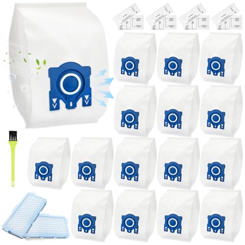16 stycken dammsugarpåsar för Miele GN 3D dammsugare Classic C1 Complete C2 C3, S400i, S2, S5, S8-serien dammpåsar, effektivitetspåsar inklusive 4 frånluftsfilter 4 motorskyddsfilter och 2 hepa-filter