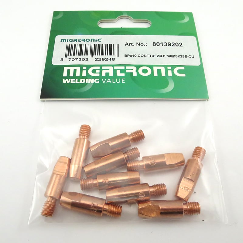 Migatronic Kontaktrör ø0,8 M6 ø8x28mm E-Cu 10-pack