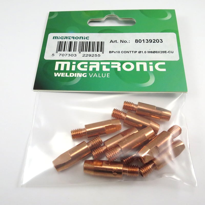 Migatronic Kontaktrör ø1,0 M6 ø8x28mm E-Cu 10-pack