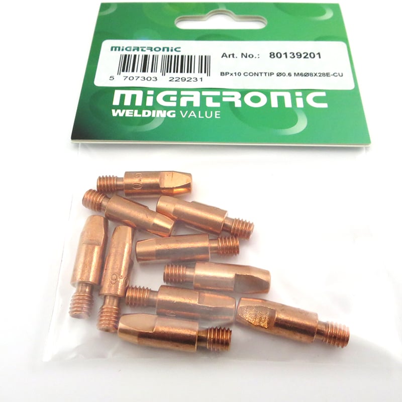 Migatronic Kontaktrör ø0,6 M6 ø8x28mm E-Cu 10-pack