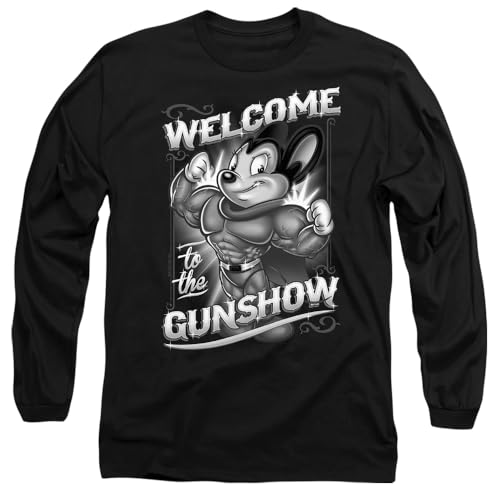 Mighty Mouse Mighty Gunshow Långärmad T-shirt för män, svart, XX-Large, Svart, XXL