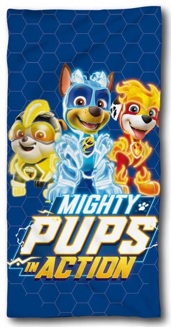 Paw Patrol handduk - 70x140 cm - 100% bomull - Mighty Pups In Action - Mjuk badhandduk med de populära valparna