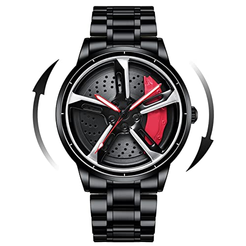 Mihawk Mäns klockor - motorsportarmbandsur i 3D-fälgdesign gjord av rostfritt stål - anpassad designerklocka med mineralglas - kvartsklocka (X-RS7)