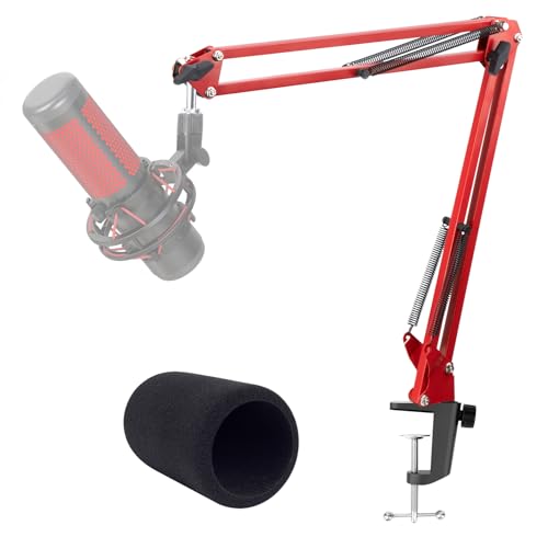 YOUSHARES HyperX QuadCast mikrofonarm röd, professionell studio boom arm med skumpop-filter, mikrofonstativ kompatibel med HyperX QuadCast S/ProCast mikrofon 3/8 tum till 5/8 tum adapter från
