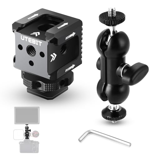 UTEBIT Triple Cold Shoe Mount med kamera blixtskoadapter, 360° vridbar dual kulhuvud Magic Arm och 1/4 tum – 20 gänga trippel kall skohållare för bildskärm, mikrofon, LED-blixt