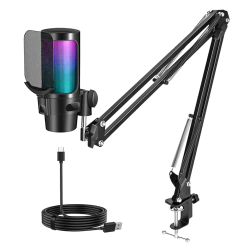 SUDOTACK USB spelmikrofon, professionell mikrofon PC-kondensator med arm, popfilter, mikrofonspindel för podcasting, streaming, inspelning, YouTube, Twitch, hemmastudio, röstoff