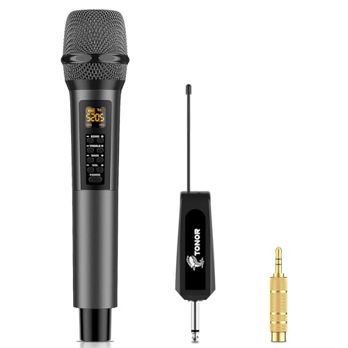 Trådlösa mikrofoner med bas/eko/diskant, TONOR mikrofon med receiver för karaoke, hemmabio, DJ, bröllop, fest, kyrka, 30 UHF justerbara frekvenser, 60 meter TW515