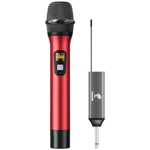 TONOR Trådlös mikrofon, UHF metall trådlöst handmikrofonsystem med uppladdningsbar mottagare, 1/4 tum utgång för förstärkare, PA-system, sjungande karaoke-maskin, 60 m (TW620), Röd