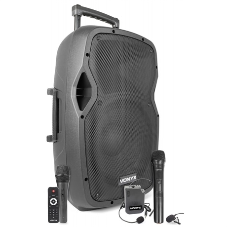 Vonyx AP1200PA Mobil förstärkare/högtalare 12" BP-HH-UHF/, Batteridriven 12" högtalare med UHF mikrofon och headset