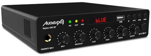 Audibax Dayton 120T BT - in-line ljudförstärkare - Bluetooth-anslutning - 120 W effekt - mikrofon, linje och USB-ingångar - klass D-förstärkare med USB-ingång och FM-radio