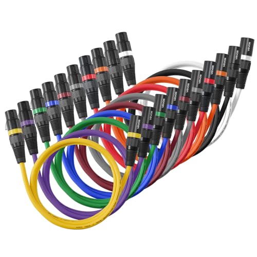 VEVOR XLR-kabel 1,0 m, 10-pack, skärmad balanserad DMX hane till hona mikrofonkablar, guldpläterad 3-stifts XLR mikrofon högtalarsladd, för scenbelysning, mikrofoner, förstärkare, mixer