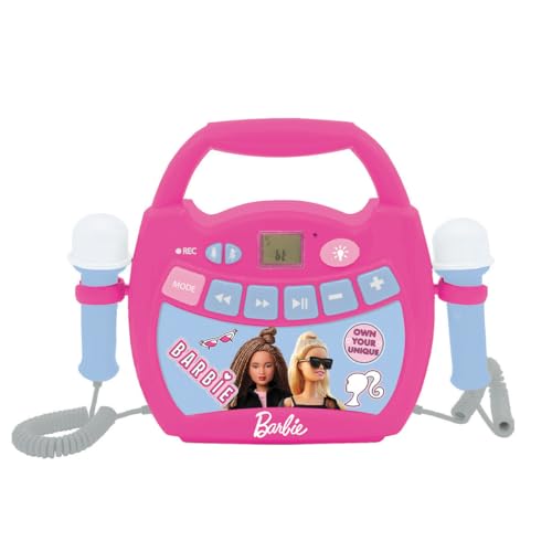 LEXIBOOK, Mattel Barbie, bärbar karaoke digital spelare för barn, mikrofoner, ljuseffekter, Bluetooth, skiv- och röstbytarfunktioner, rosa, MP320BBZLXB