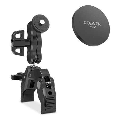 NEEWER Magnetisk mobiltelefonhållare med Super Clamp, justerbar metallhållare med 1/4 tum skruv och kulhuvud Magic Arm kompatibel med MagSafe iPhone för stång stativ mikrofonstativ bord, PA150