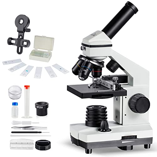 Mikroskop för barn och nybörjare 100X-1000X, professionellt mikroskop med telefonadapter, blad för mikroskopset, kraftfullt bärbart mikroskop för hemforskare