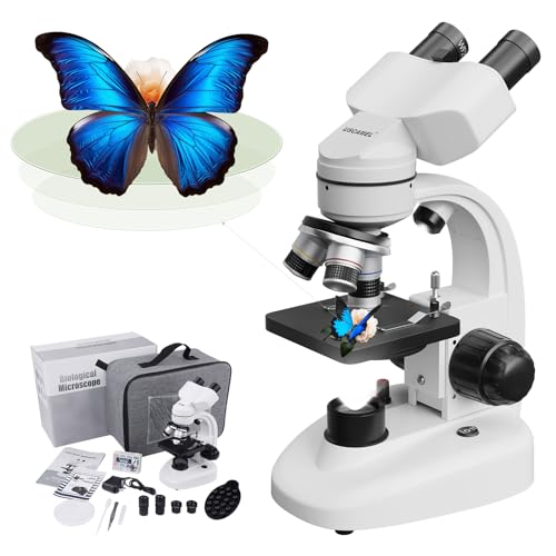 40X-1000X binokulärt mikroskop för vuxna, binokulärt mikroskop med förvaringsväska för objektglas, strömadapter, sammansatt mikroskop för hemundervisning och hobbybruk