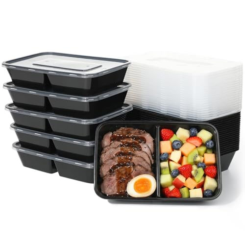 Jogoico 25-pack förberedningslådor, 2 fack, 500 ml måleribehållare med lock, mikrovågsugn, plast, återanvändbar lufttät för mat för lunch fitness