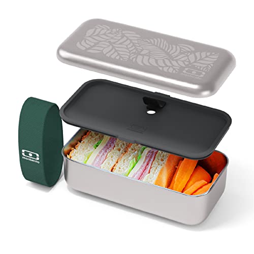 MONBENTO - Bento Lunchlåda Rostfritt stål MB Sense Jungle - Lunchlåda i metall Arbete/Skola Meal Prep - Läcksäker - Ugnssäker - Mikrovågsugn - Diskmaskin och frys säker - Livsmedelssäker - Grå
