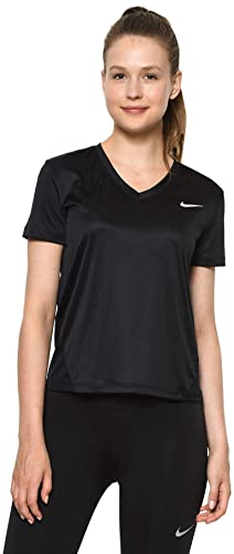 Nike Damer W NK Miler TOP Vneck T-shirt Svart/reflekterande silver S