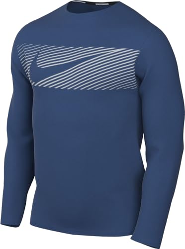 Nike Herr Top M Nk Df Uv Miler Top Ls Flash, Court blå/reflekterande silv, FB8552-476, L