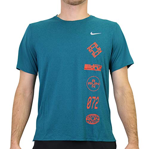 Nike herr Df Miler Top Wr Gx t-shirt Geode Teal/Team Orange/Reflect X-L