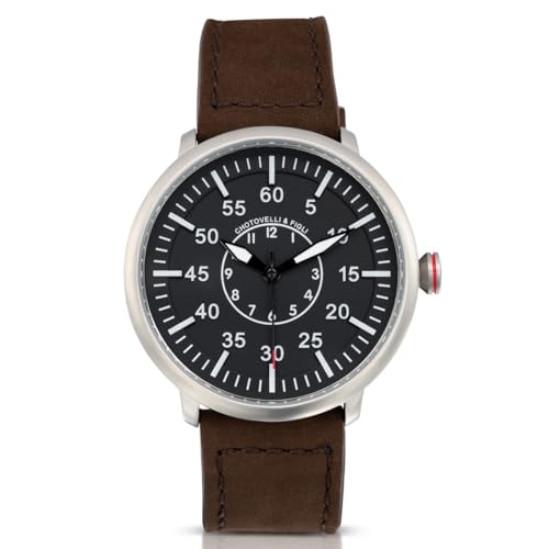 chotovelli militär flieger klocka – 1919 A-1 modell | klassisk flygplansdesign | svart urtavla, mocka läderrem | armbandsur för män