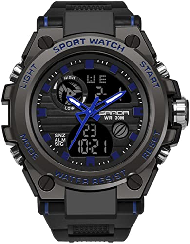 kieyeeno Herr Digital Analog Klocka, 30M Vattentät Militär Sport LED Klockor Män Med Urtavla Bred Klockor, Blå