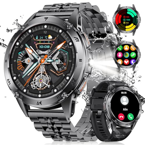 LIGE Smart klocka för män med Bluetooth-samtal, 1,43 tum AMOLED Smartwatch med ficklampa, 530 mAh, sömnmonitor, IP68, vattentät, 120+ sportig militär smartklocka för Android iOS