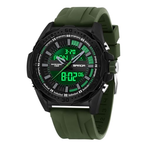 Yuxier Klockor för män militär digital analog klocka sport utomhus multifunktionella armbandsur alarmstoppur vattentäta armbandsur för vardagliga affärer, Svart grönt