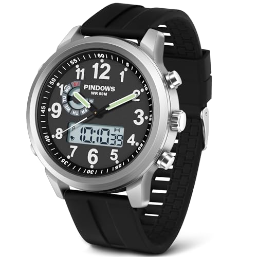 PINIDOUS Herrklockor digital sport utomhus klockor militär multifunktionell klocka analog kvarts vattentät rostfritt stål mode klassiskt armbandsur, svart, Sportig