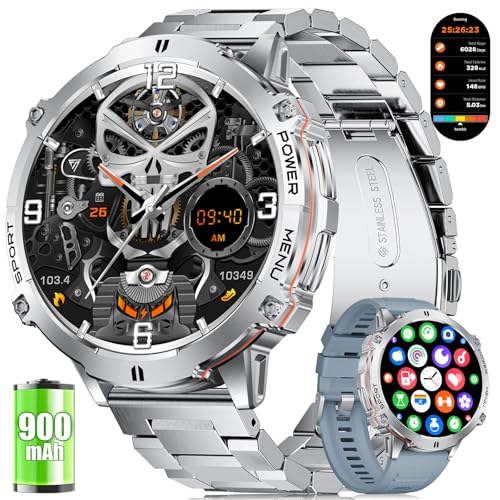 LIGE Smart herrklocka med 900 mAh, 1,73 tum AMOLED stor skärm militär smart klocka med kompass barometer, 110+ sportlägen, IP68, vattentät, puls/SpO2 för Android iOS