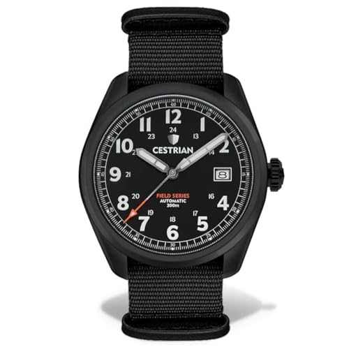 Cestrian Field serien automatisk svart urtavla svart PVD fodral Nato rem militär stil klocka 200 m CF121N5660, Svart, armband