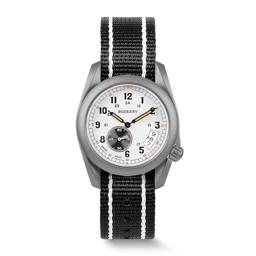 BODERRY 38 mm herrklocka titan fältklocka – schweizisk kvartsrörelse, militär klocka dag datumfunktion 100 m vattenbeständighet – Voyager, Vitt, Utomhussporter