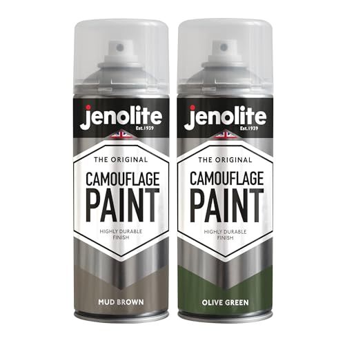 JENOLITE Armékamouflagefärg tvåpack | olivgrön och lerbrun | 2 x 400 ml | perfekt för modelltillverkning, paintball, Airsoft, militärfordon