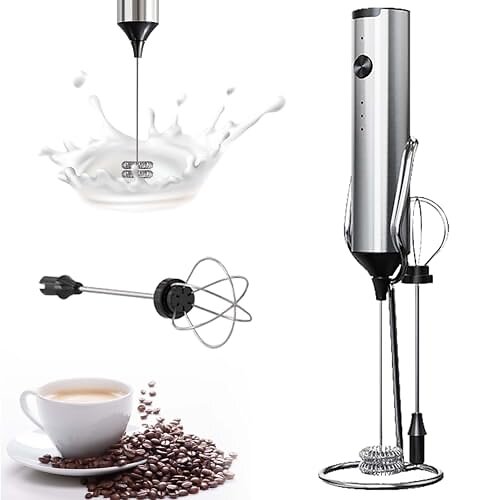 KKNE Electric Milk Frother, Milk Frother Manuell Milk Frother med kraftfull elektrisk motor för kaffe, fraktioner, Milk, Matcha, Hot Choklad