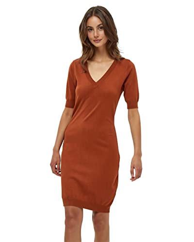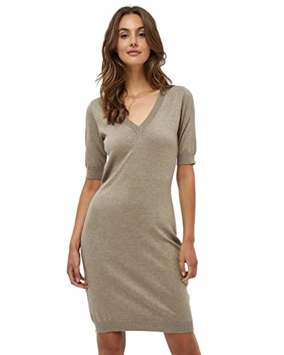 Minus Milla V-Neck Knit Klänning 2, Stickad V-ringad klänning för damer, Brun (399 Wood Smoke Melange), XS