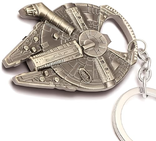 WOO LANDO Han Solo's Millennium Falcon flasköppnare i rymdskeppslook med nyckelring, rostfritt stålutseende, 60 x 45 mm, present till Star Wars-fans