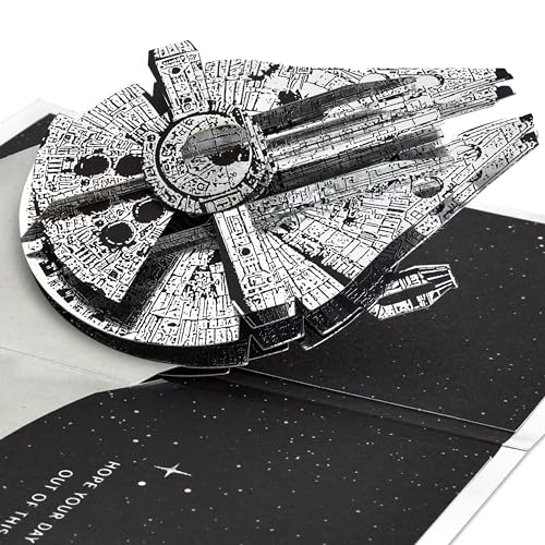 Hallmark Star Wars Millennium Falcon, 3D och popup-kort, alla tillfällen, födelsedag, fars dag, Han Solo, rymdtema, silver